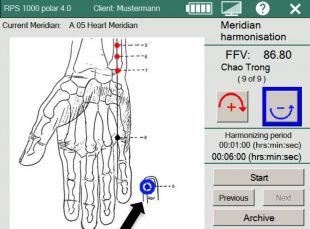 - la recherche dans tous les programmes RAH des programmes adaptés au profil particulier du patient tel qu'analysé par la mesure de l'onde du pouls (ECG de précision), et donc le classement dans chaque chapitre du RAH des priorités (ex: identification des pathogènes, organes, programmes systémiques à traiter en priorité car correspondant au profil du client).
