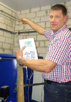 cet éleveur de cochon (2000 têtes) a réduit ses coûts de traitement (antibiotiques etc.) de 3€ à 0,25€ par tête grâce à un PS10 muni d'un détecteur métal, plongé dans l'eau de boisson des animaux.
