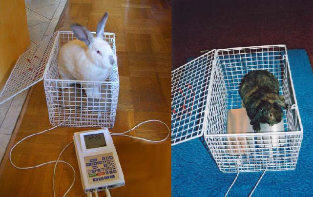 Harmonisation d'un oiseau avec un détecteur métal et d'un lapin dans sa cage
