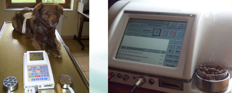 Grâce au test énergétique, il est possible d'obtenir une réponse immédiate de compatibilité énergétique des aliments, compléments, médicaments avec chaque animal. Et pour 40 chevaux, il suffit de conserver des poils de chaque animal dans une ampoule pour tester les aliments à chaque changement de saison !  Le transfert énergétique permet également de transférer l'empreinte énergétique d'un traitement, par exemple dans un aquarium ou sur des supports liquides ou minéraux.